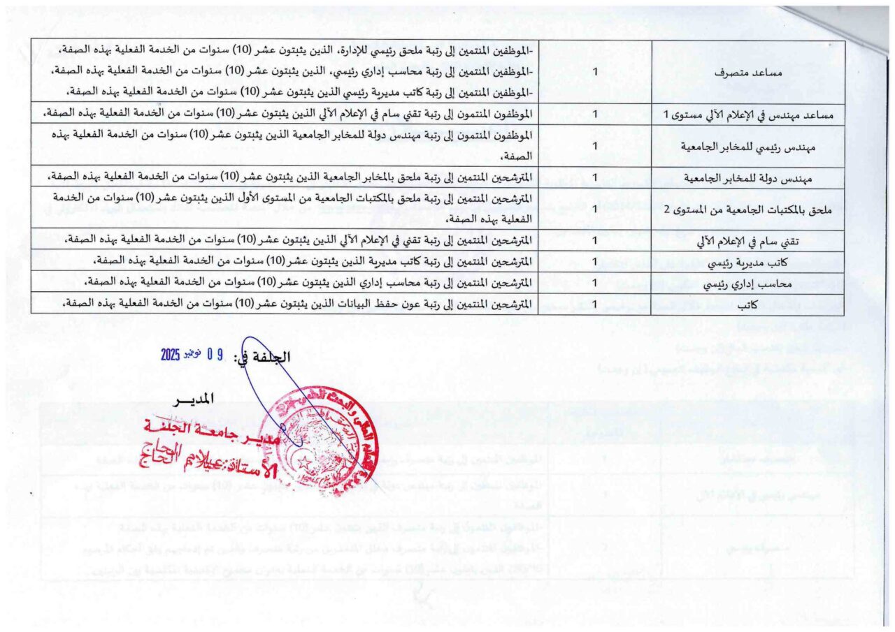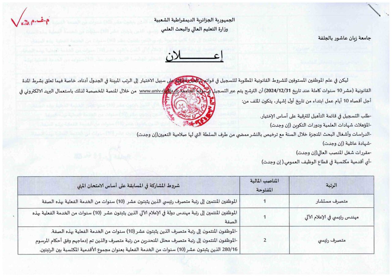 التسجيل للترشح يكون عبر البريد المهني univ-djelfa.dz@