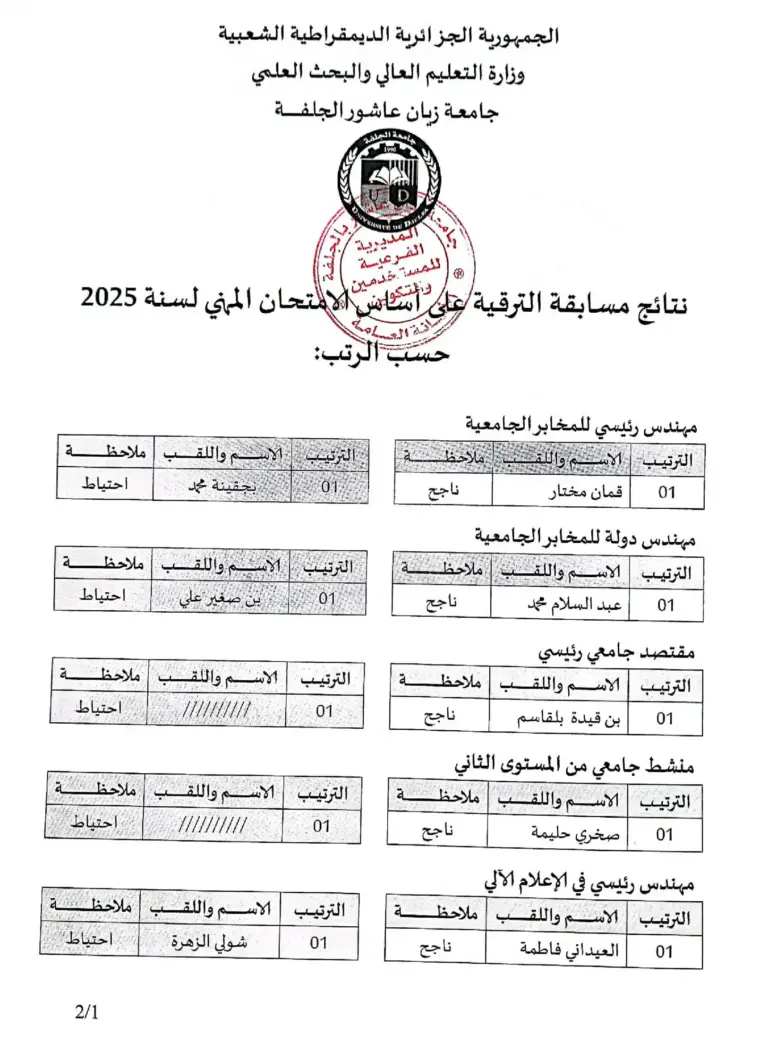 نتائج مسابقة الترقية على أساس الامتحان المهني 2025