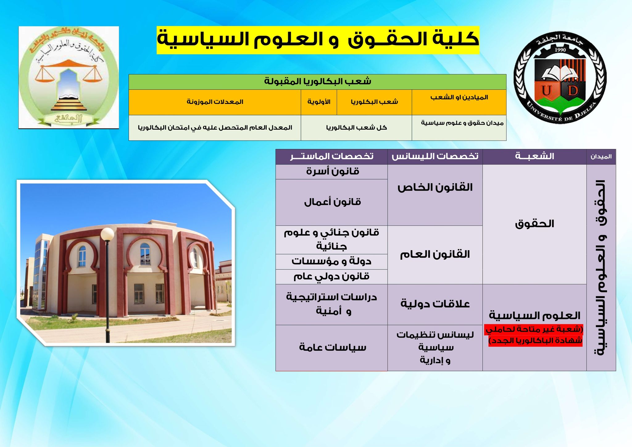 عروض التكوين (ليسانس - ماستر) بجامعة الجلفــــة المنشور الوزاري المنشور الوزاري رقم 01 المنشور الوزاري رقم 03 المنشور الوزاري رقم 04 تطبيق توجيهكم مصلحة الاعلام والتوجيه