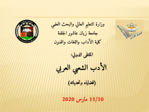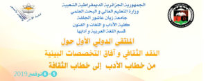 الملتقى الدولي الأول حول النقد الثقافي و آفاق التخصصات البينية من خطاب الأدب إلى خطاب الثقافة 2019-09-14