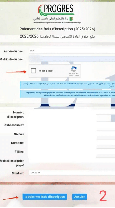 University registration fees are symbolic amounts that students pay when completing their final enrollment at the university. This is only a symbolic contribution (200 DZD) and not actual tuition fees, since higher education in Algeria is free and funded by the state.